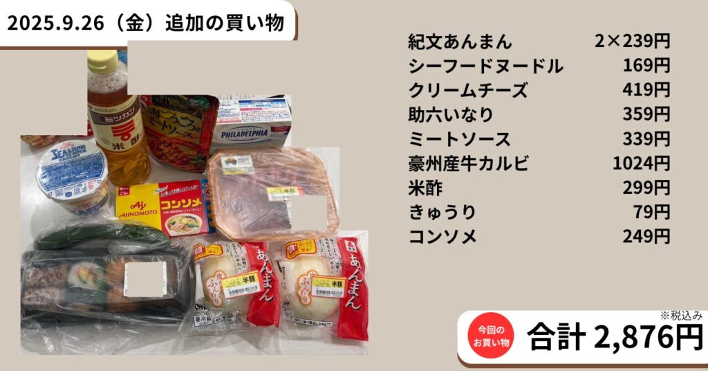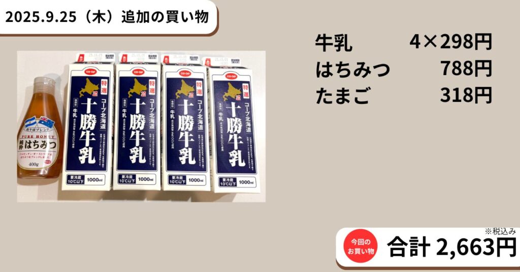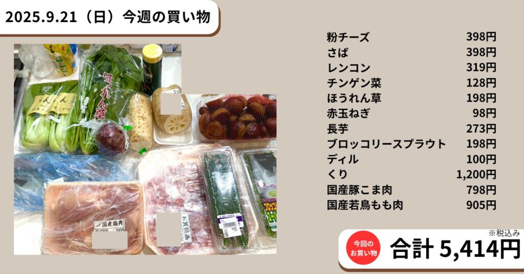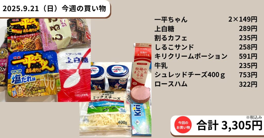 2025.9.21~9.27 今週の買い出し
